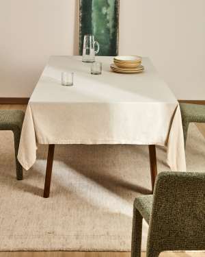 Oreti tablecloth in beige cotton and linen and cocoa embroidery feature, 150x250cm