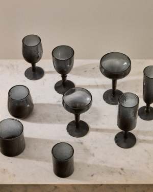 De Obila-collectie benadrukt de puurheid van gerecycled glas met een sober en elegant ontwerp. De glazen, verkrijgbaar in transparant, bruin en blauw, vangen het licht in wisselende kleuren en maken van elke toast een speciaal moment.