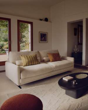 Een collectie die een ode is aan de iconische vormen van het design van halverwege de 20e eeuw, geherinterpreteerd met hedendaagse proporties en een dubbele zitting die je uitnodigt om te genieten van zijn comfort. Elk meubelstuk kan elke omgeving transformeren met zijn elegante aanwezigheid en veelzijdigheid en wordt zo de perfecte ontmoetingsplaats tussen klassiek en modern.