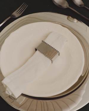 Flia white linen and cotton tablecloth gold-coloured lurex embroidered detail, 150 x 250 cm