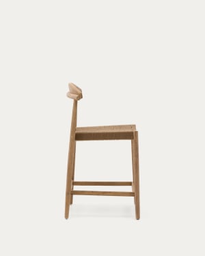 Tabouret Enit en corde papier beige et bois de chêne finition naturelle 43cm FSC Mix Credit