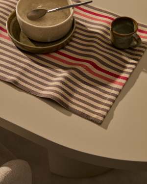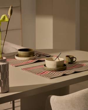 Housse de coussin Enara en soie et coton à rayures beige et marron 45 x 45 cm
