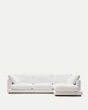 La collezione di divani e poggiapiedi Gala unisce linee semplici e proporzioni generose con la morbidezza della ciniglia beige. Un comfort che si percepisce in ogni dettaglio: sedute e cuscini imbottiti, sfoderabili e reversibili, progettati per durare nel tempo.Adesso in versione modulare, questo divano è stato accuratamente progettato per offrire comodità e adattabilità, consentendo di personalizzare ogni pezzo in base alle tue esigenze e ai tuoi spazi. Scegli il tessuto e il colore che più si adatta a te per creare il tuo divano perfetto.