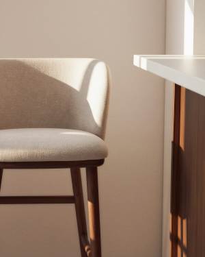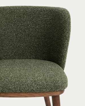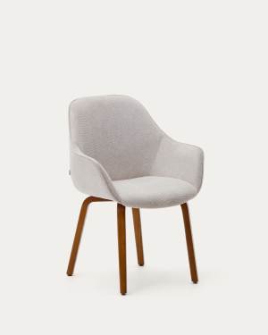 Sedia Aleli in ciniglia beige e gambe in legno massiccio di frassino con finitura noce
