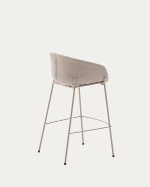 Sgabello Yvette di ciniglia beige e gambe in acciaio con finitura beige altezza 75 cm