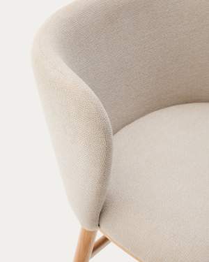 Sedia Aleli in ciniglia beige e gambe in legno massiccio di frassino con finitura naturale