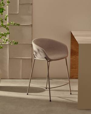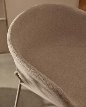Sgabello Yvette di ciniglia beige e gambe in acciaio con finitura beige altezza 65 cm