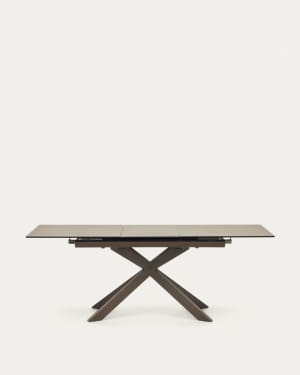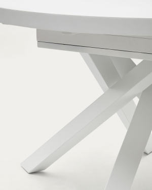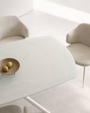 Atminda extendable table in glass and MDF with steel legs in white, 160 (210) x 90 cm