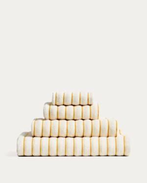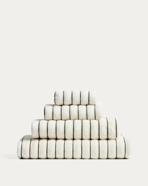 Bei Kave Home legen wir großen Wert auf Individualität und bieten Ihnen daher die Möglichkeit, Ihr eigenes Handtuchset zusammenzustellen. Kombinieren Sie Handtücher in verschiedenen Größen und Farben, um ein harmonisches und persönliches Ambiente in Ihrem Badezimmer zu schaffen. Unsere Auswahl an großen und kleinen Badetüchern bietet für jeden Bedarf das passende Produkt.