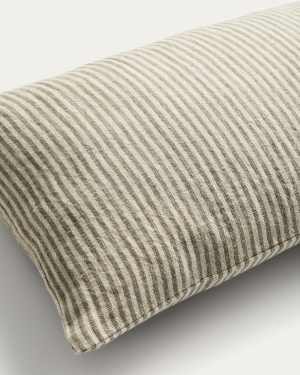 Maialen Kissenbezug 100% Leinen kariert weiß und schwarz gestreift 45 x 45 cm