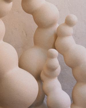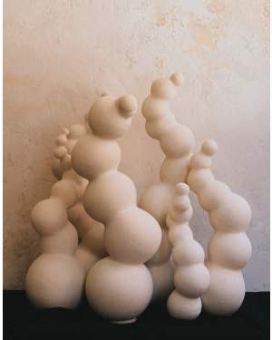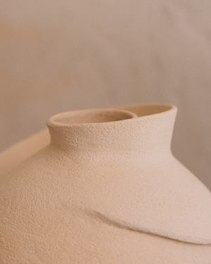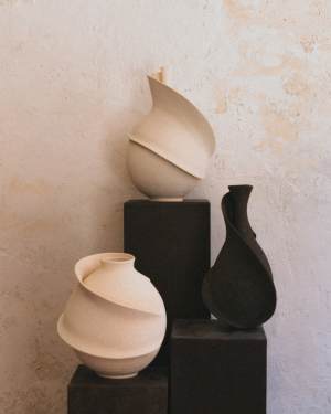 L'artista crea obres úniques en fang, inspirades en el concepte d'Areté, que compren el respecte per la transmissió del saber i la importància de la creació artesanal. Cadascuna de les seves peces és resultat d'un equilibri delicat entre tècnica, rigor i llibertat creativa, on la tradició i la innovació es troben. Per a ella, aquest equilibri és el que permet explorar la seva llibertat artística, transformant l'acte de modelar el fang en una experiència en què no hi ha llocs fixos, sinó estats d'inspiració. Així, el seu treball transcendeix l'objecte físic per convertir-se en una manifestació de valors i emocions transmesos a través de les mans.15 productes