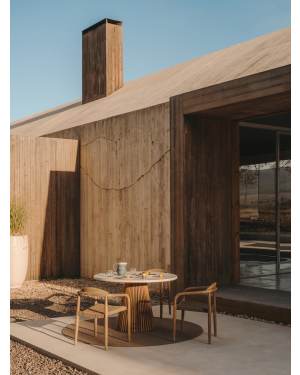 Mesa redonda de exterior Alcaufar de madera maciza de teca y cemento blanco Ø 120 cm