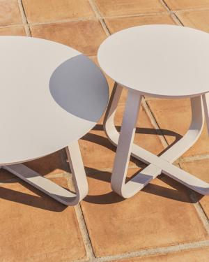We also have collections such as Macarella, which include side tables for small terraces designed to accompany an outdoor sofa or add a point of support without overcrowding the terrace. Their size, proportions and simple shapes help maintain a balanced atmosphere even in small spaces, reinforcing the functionality of our garden tables.