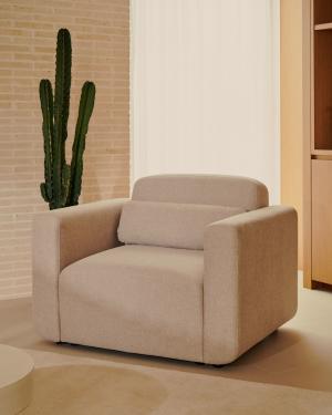 Nema armchair in beige chenille with solid ash wood legs in a natural finish FSC 100%