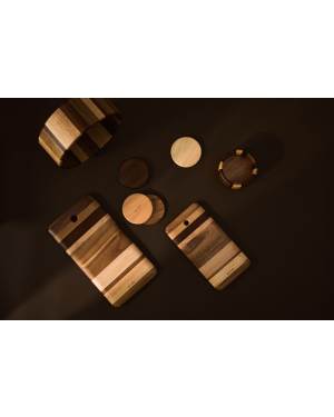 Nover celebrates the richness of acacia wood with pieces that combine practicality and aesthetics. Each design combines different shades, creating unique contrasts that turn the everyday into a stylish touch. The solidity of the wood is balanced by simple, clean lines, designed to accompany the table and the kitchen with warm and timeless character.