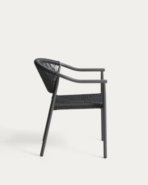 Futadera stackable outdoor chair in grey synthetic cord and grey painted steel