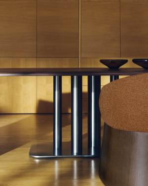 Melvar reinterpreta il design mid-century con pezzi dall’eleganza senza tempo e dalla sofisticazione contemporanea. Unisce la profondità del noce scuro alla forza sottile dell’acciaio inox, creando un equilibrio visivo che conquista per personalità e raffinatezza. Le silhouette scultoree, caratterizzate da gambe di diversi diametri e dettagli rifiniti con cura, valorizzano ogni ambiente.