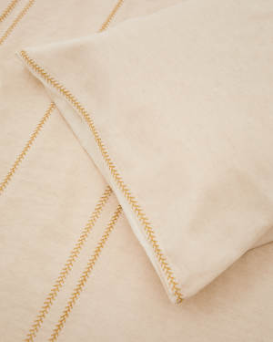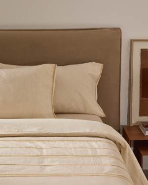 Linara Set of Duvet Cover and Pillowcases in Beige Cotton and Linen for 150 cm Bed