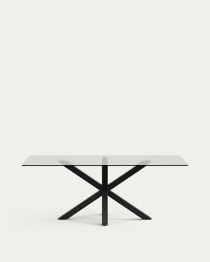 Argo tafel in matzwart glas en stalen poten met witte afwerking 160 x 90 cm