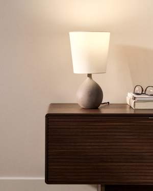 In Viona, light blends with calm. The stone-effect bases offer a sense of solidity, while the ivory-coloured cotton shades filter a soft and enveloping light. Pieces created to bring balance and serenity to your home, accompanying every moment with their discreet yet timeless presence.